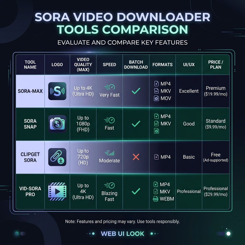 Comparison Table: Top Sora Downloaders